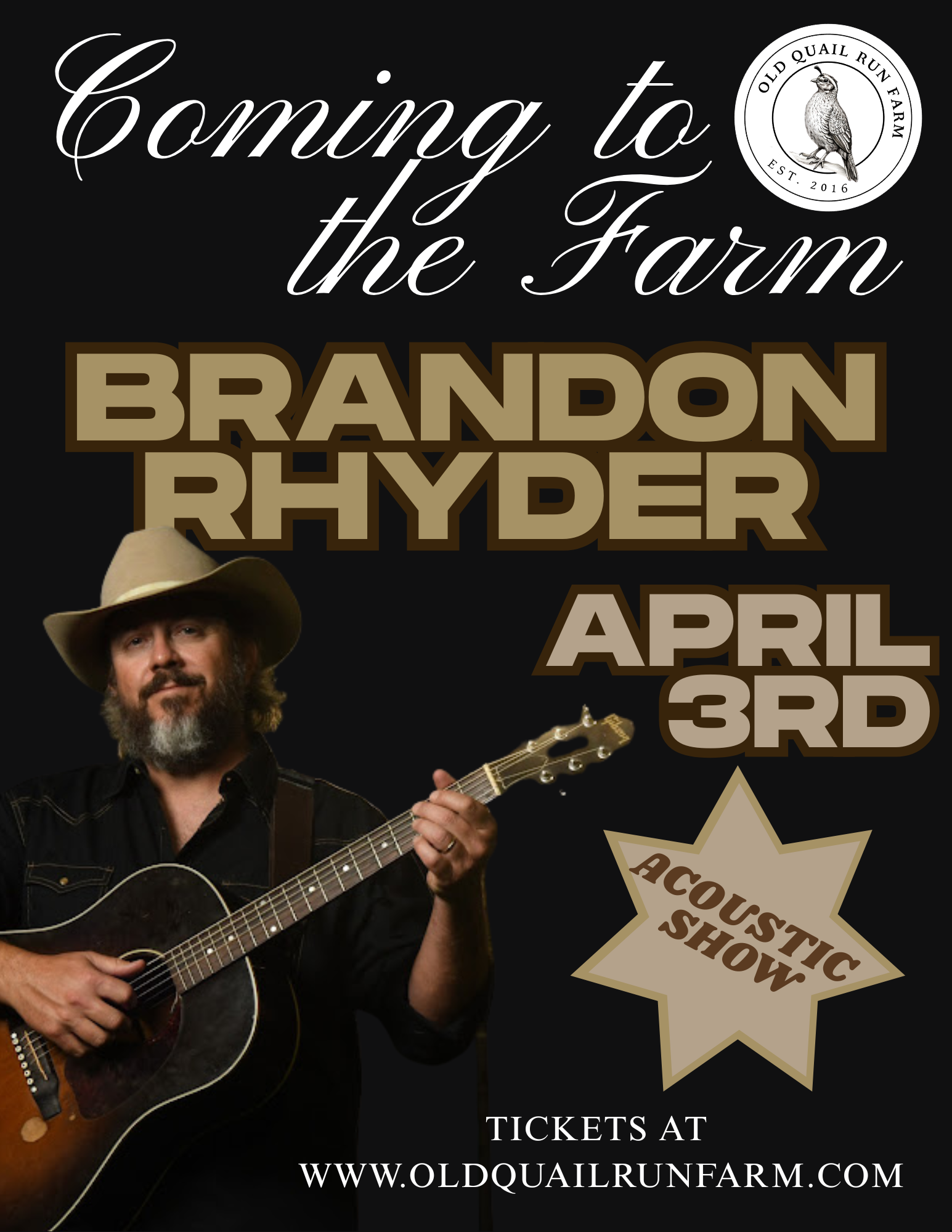 Spend a laid-back evening at Old Quail Run Farm with live music from Brandon Rhyder.
